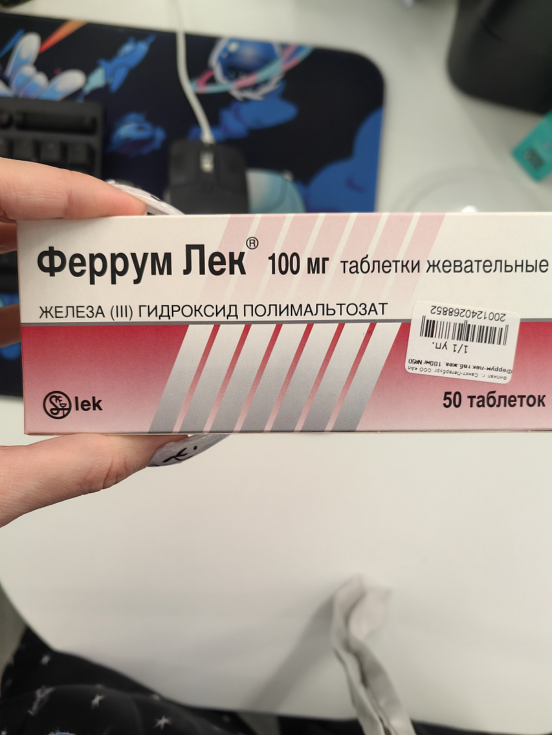 Также уже два дня пропиваю железо, чтобы восстановить его уровень до нормального с 6.8. Таблетки жевательные, прилипают к зубам, терплю и употребляю.