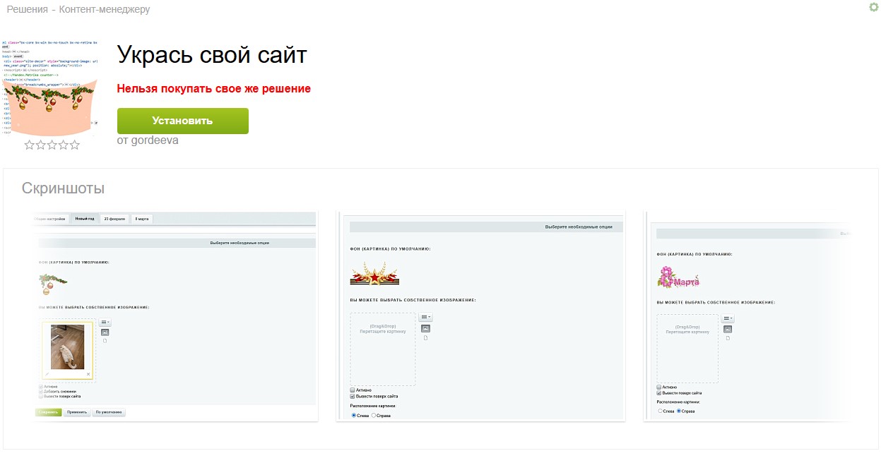 Но самая большая новость ушедшей недели - публикация моего первого модуля как от полноценного (хоть пока и бизнес) партнера. Модуль простой, бесплатный, нарядный.