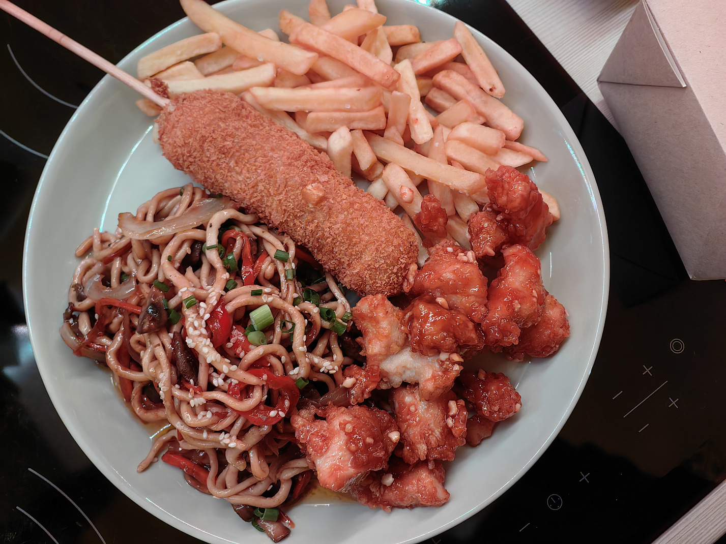 В Момо все понравилось: сочные пухлые корндоги, нежнейшая курочка и картошечка-фри отменная.