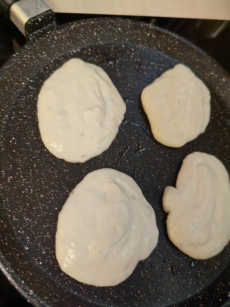 Выкладывайте тесто на сковороду столовой ложкой, которую можно предварительно смачивать в воде, чтобы тесто не липло.