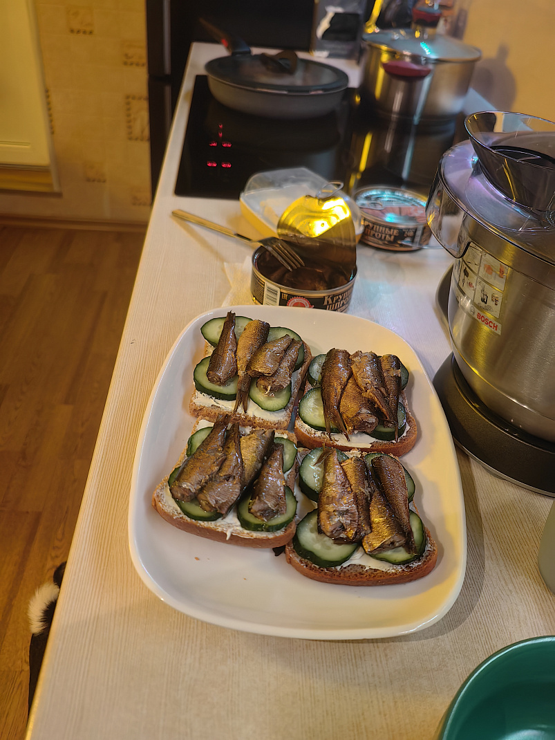 Вечером наваяла ужин: бутеры, разогрев вчерашнего. Готовка? Да. (9)